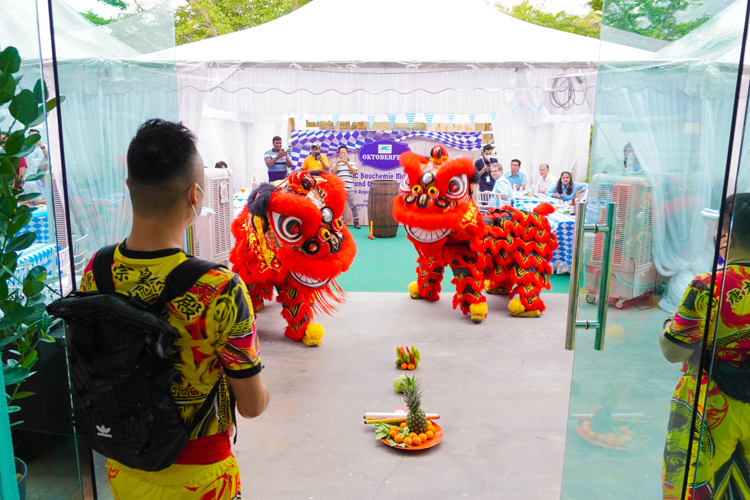 Dr Ekkehard zur Mühlen, Managing Director of MC-Bauchemie GmbH & Co. KG, and Vincent Loke, Regional Manager for Southeast Asia at MC-Bauchemie, welcomed the customers and employees of MC-Bauchemie (Malaysia) Sdn Bhd (hereinafter: MC-Bauchemie Malaysia) and representatives of MC-Bauchemie Singapore to an Oktoberfest that was all about the mix of cultures and traditions. The celebration opened with the traditional Chinese Lion Dance, which is said to bring success, prosperity and good luck to MC-Bauchemie Malaysia and its new location.
